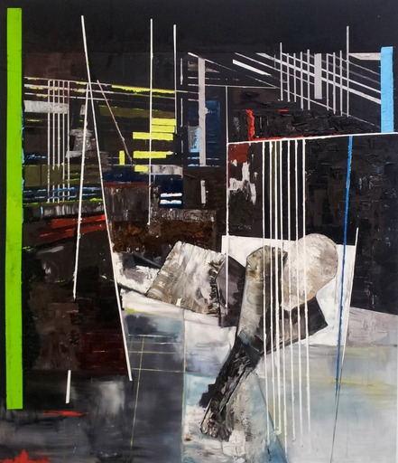 De constructies worden door mij omgebouwd naar een structuur van vlakken, lijnen en ruimtes waar binnen de mens een rol vindt. Ze zijn de figuranten van het script. De ene keer pasteus neergezet en de andere keer heel mager naar gelang de beeldtaal nodig heeft. Dan weer chaotisch in een weerval van lijnen en vlakken, dan weer in een rust met weinig afleiding. Het script bepaalt wat nodig is. Het script bepaalt ook wat de drager moet zijn. De ene keer een opgespannen doek, dan een metaalplaat of een heldere acrylaatplaat of een doek samengesteld uit meerdere doeken vergroot met houten raampjes of gaten in het midden.